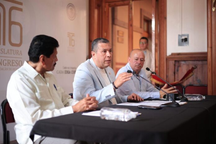 Morelia, Michoacán, a 22 de abril de 2026.- El diputado Juan Carlos Barragán recibió dos iniciativas impulsadas por transportistas de Michoacán, encabezados por José Trinidad Martínez Pasalagua y Miguel Corona Salto, quienes acudieron acompañados de integrantes del gremio para presentar sus propuestas.
