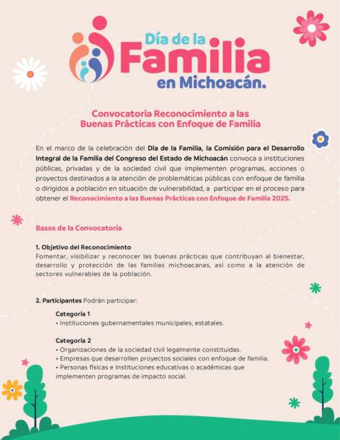 Las diputadas Teresita Herrera Maldonado y Belinda Hurtado Marín, que integran la Comisión para el Desarrollo Integral de la Familia en el Congreso del Estado, invitan a participar en la convocatoria “Reconocimiento a las Buenas Prácticas con Enfoque de Familia”.