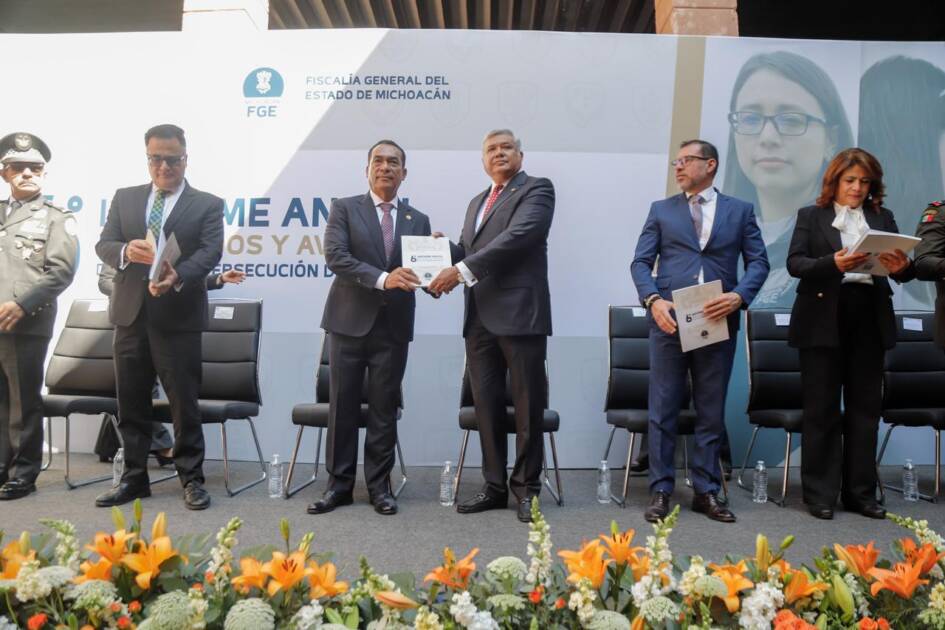 Morelia, Michoacán, a 26 de febrero de 2025.- El Presidente de la Mesa Directiva del Congreso recibió el Sexto Informe de Labores que rindió el Fiscal General del Estado (FGE), en el que se destacan los logros alcanzados bajo el compromiso de otorgar más y mejores resultados a la sociedad michoacana.