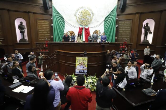 Morelia, Michoacán, a 4 de febrero del 2026.- Previo al inicio de la sesión programada para este miércoles, diputadas y diputados integrantes de la 76 Legislatura, rindieron homenaje póstumo y guardaron un minuto de silencio por el sensible fallecimiento de Víctor Manuel Mujica Vega y Anayeli Hernández León, intérpretes de Lengua de Señas Mexicana y compañeros trabajadores de este Poder Legislativo, así como de su hija Megan Mujica Hernandez.