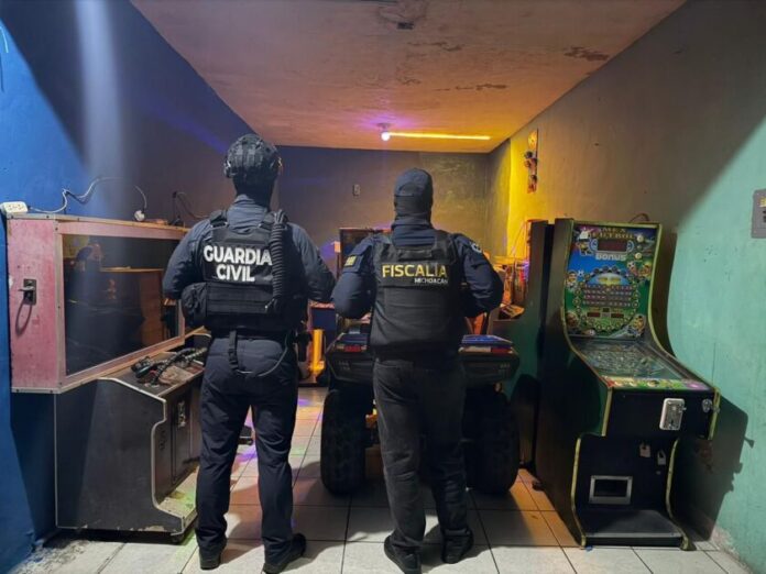 La Secretaría de Seguridad Pública (SSP) participó en 12 cateos que se realizaron en Lázaro Cárdenas donde fueron aseguradas 98 máquinas tragamonedas, como parte de la Estrategia Nacional contra la Extorsión, dado que estos dispositivos son presuntamente utilizados por grupos delictivos.