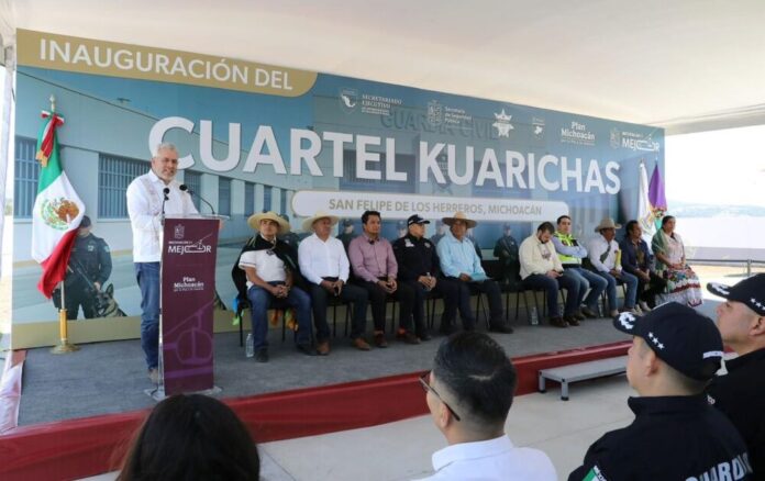 Con el objetivo de consolidar la paz y la seguridad en las comunidades originarias de la Meseta Purépecha, el gobernador Alfredo Ramírez Bedolla inauguró el nuevo Cuartel Regional Kuarichas para que la policía comunitaria y elementos de la Guardia Civil, brinden atención directa a las comunidades de San Felipe de los Herreros, Angahuan y Ahuirán, extendiendo su radio de acción a las zonas aledañas.