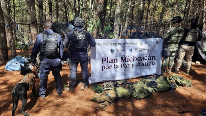 Como parte de las estrategias del Plan Michoacán por la Paz y la Justicia, elementos de la Secretaría de Seguridad Pública (SSP), en coordinación con la Secretaría de la Defensa Nacional (Defensa) y la Fiscalía General del Estado (FGE), localizaron y desmantelaron un asentamiento provisional presuntamente utilizado para actividades ilícitas en una zona serrana de este municipio.