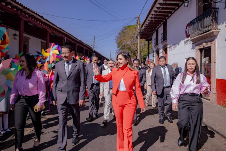 Salvador Escalante, Michoacán: En el marco del 220 aniversario del natalicio de Benito Juárez, el Gobierno Municipal de Salvador Escalante, encabezado por la presidenta municipal, llevó a cabo un acto cívico conmemorativo, seguido de un colorido desfile para celebrar la llegada de la primavera, en el que participaron instituciones educativas del municipio.