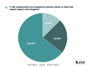 El estudio, levantado entre el 19 y el 21 de septiembre de 2025 a mil 250 personas, también indica que 64.45 % de la población percibe un mayor nivel de inseguridad en comparación con la administración pasada.