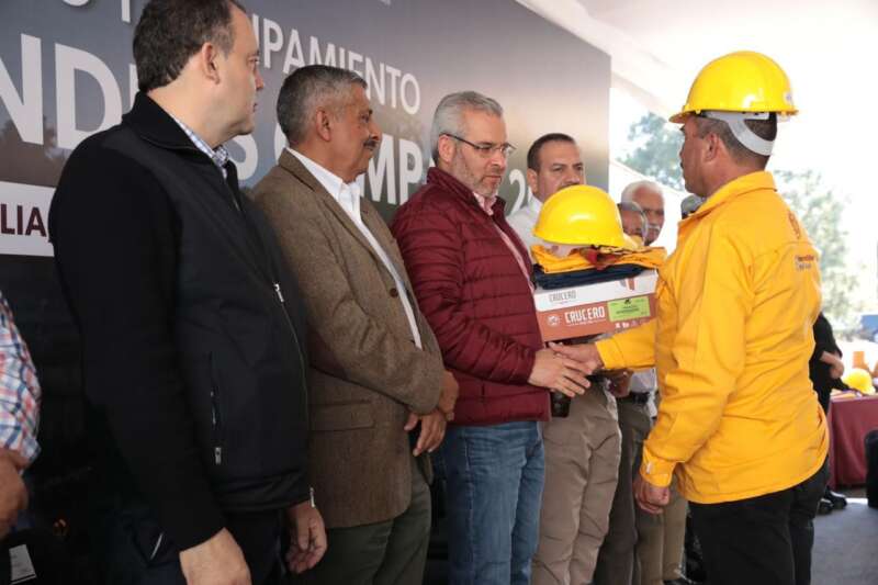 Tras destacar que el 95 por ciento de los incendios forestales son provocados de forma intencional, el mandatario explicó que este año se adelantó un mes la entrega del equipamiento conformado por drones, camisas, pantalones, cascos, botas, guantes, mochilas, rastrillos, hachas, palas y botiquines, derivado de la sequía que se registra en la entidad.