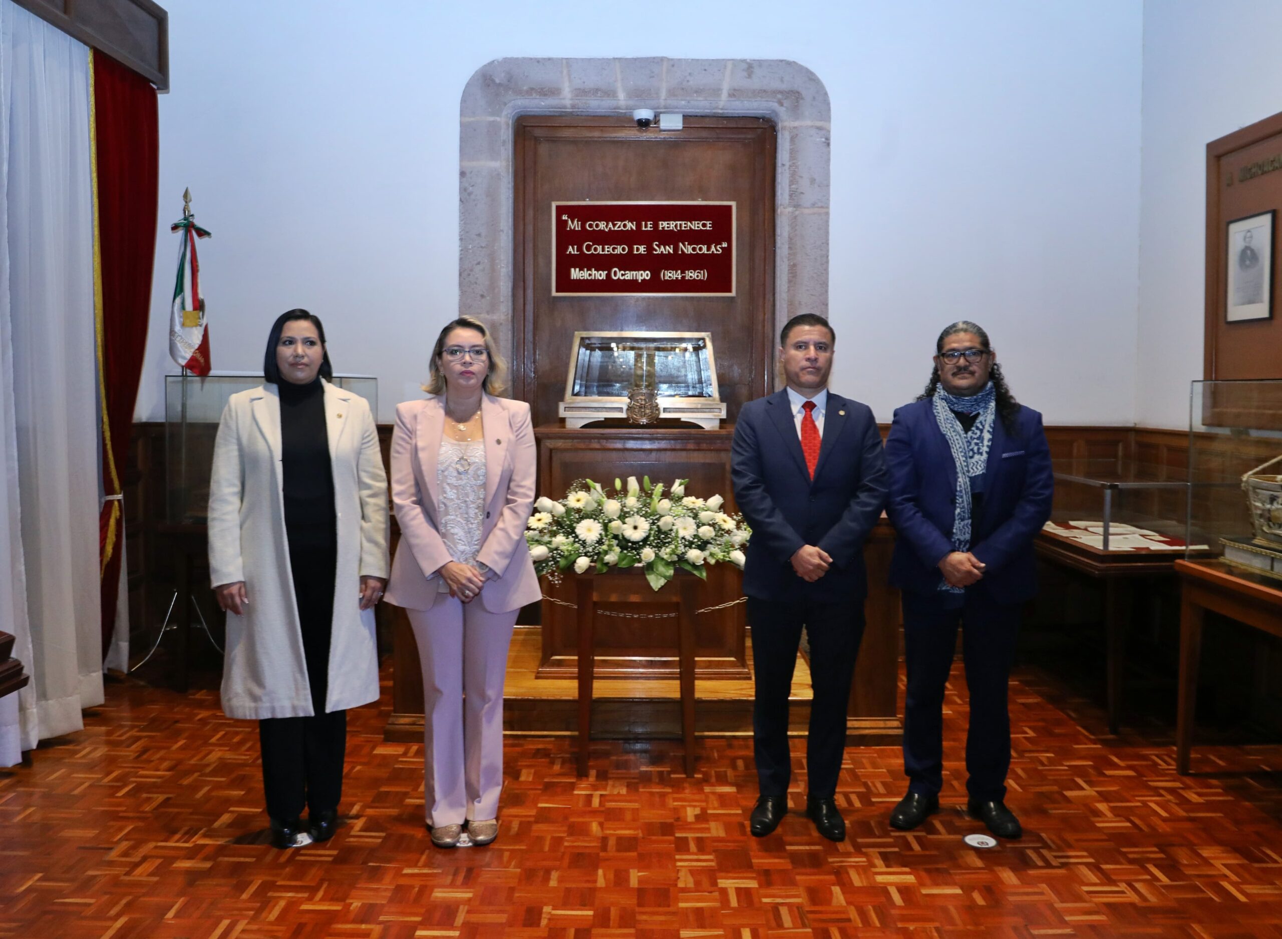 Al término del acto, la rectora Yarabí Ávila González acompañada del secretario General, Javier Cervantes Rodríguez, del orador oficial, y de la regente del Colegio Primitivo y Nacional de San Nicolás de Hidalgo, Janeth Morales Cortés, acudieron a la Sala Melchor Ocampo ubicada en dicha institución en donde rindieron guardia de Honor y colocaron una ofrenda floral.